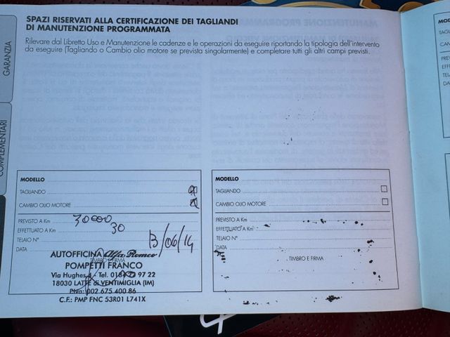 Airbag Beifahrerseite abschaltbar, Airbag Fahrer-/Beifahrerseite, Aktive Kopfstützen vorn, Antriebs-Schlupfregelung (ASR), Audiosystem: Radio-Basisanlage mit CD und MP3, Auspuffendrohr verchromt, Außenspiegel elektr. verstell- und heizbar, beide, Außenspiegel Wagenfarbe, Außentemperaturanzeige, Bordcomputer / Check-Control, Bremsassistent (HBA / EBA), Elektron. Bremskraftverteiler (EBD), Elektron. Differentialsperre (Q2), Fahrassistenz-System: Alfa Romeo D.N.A.-Fahrdynamik-System, Fahrassistenz-System: Berganfahrhilfe (Hill-Holder), Fußmatten, Heckleuchten LED, Heckscheibenwischer, Heckspoiler Wagenfarbe, Isofix-Aufnahmen für Kindersitz, Karosserie: 5-türig, Klimaautomatik 2-Zonen, Kopf-Airbag-System, Kopfstützen hinten (3-fach), Kurvenbremskontrolle (CBC / ESBS), Lenksäule (Lenkrad) verstellbar (vertikal / axial), LM-Felgen, Mittelarmlehne hinten, Motor 1,4 Ltr. - 125 kW Turbo KAT, Motor-Schleppmoment-Regulator (MSR / EDC), Multi-Funktions-Display, Nebelschlussleuchte, Rahmen Frontscheinwerfer und Heckleuchten Chrom, mattiert, Reifen-Reparaturkit, Rücksitz geteilt/klappbar, Schadstoffarm nach Abgasnorm Euro 5, Seitenairbag, Sitz vorn links höhenverstellbar, Start/Stop-Anlage, Stoßfänger Wagenfarbe, Wärmeschutzverglasung