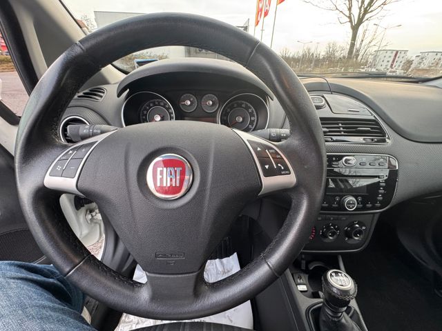 Entdecken Sie den gepflegten FIAT Punto Evo aus dem Jahr 2011. Dieser zuverlässige Kleinwagen mit Frontantrieb überzeugt durch seine praktische Ausstattung und wirtschaftlichen 1.242 ccm Benzinmotor mit 69 PS. Der Punto Evo präsentiert sich in ansprechendem Weiß mit schwarzem Stoffinterieur und bietet Platz für 5 Personen. Mit nur zwei Vorbesitzern und deutscher Ausführung ist dieses Fahrzeug eine solide Wahl für den Alltag.Die manuelle Schaltung ermöglicht ein direktes Fahrgefühl, während die manuelle Klimaanlage für angenehme Temperaturen sorgt. Zur Sicherheitsausstattung gehören ABS, ESP und umfassende Airbag-Systeme (Front- und Seitenairbags). Praktische Features wie elektrische Fensterheber, elektrisch verstellbare Außenspiegel und Zentralverriegelung erhöhen den Komfort im Alltag.
