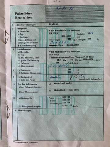 Verkauft wird im Auftrag unseres Kunden eine MZ 250/1 aus dem Baujahr 1977. Die MZ wurde 2019 komplett neu restauriert und neu lackiert.( MZ Meisterbetrieb Kirsten aus Leisnig ) u.a. wurde eine verbesserte Lichtmagnetzündanlage 12V / 180 W verbaut.Seitdem nur sporadisch bewegt. Das Motorrad befindet sich in einem sehr gutem Zustand.