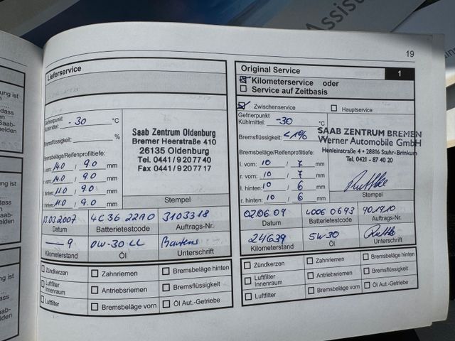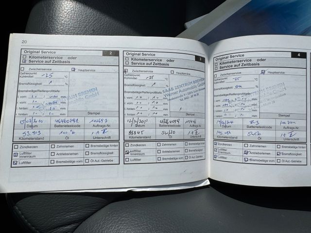 Weitere Ausstattung:3. Bremsleuchte hoch im Kofferdeckel, Airbag Fahrer-/Beifahrerseite, Aktive Kopfstützen Sahr, Antischlupfregelung (TCS), Audiosystem Saab Infotainment 70 (Radio/CD-Player MP3-fähig), Außenspiegel elektr. verstell- und heizbar, Außenspiegel Wagenfarbe, Batterie 60 Ah, Black Panel Instrument, Drehzahlmesser, Fensterheber elektrisch vorn + hinten, Gurtstraffer, Isofix-Aufnahmen für Kindersitz an Rücksitz, Karosserie: Cabrio, Klimaautomatik, Lenksäule (Lenkrad) verstellbar, Motor 2,0 Ltr. - 110 kW KAT, Nebelschlussleuchte(n), Saab - Informationsdisplay, Schalt-/Wählhebelgriff Leder, Scheinwerfer Klarglas, Seitenairbag vorn, Sitzbezug / Polsterung: Stoff / Leder, Sportsitze, Stoßfänger lackiert, Umlaufdekor Wagenfarbe, Verglasung getönt